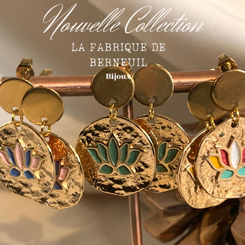Boucles d'oreilles "LOTUS", Médaillons fleur de Lotus émaillés